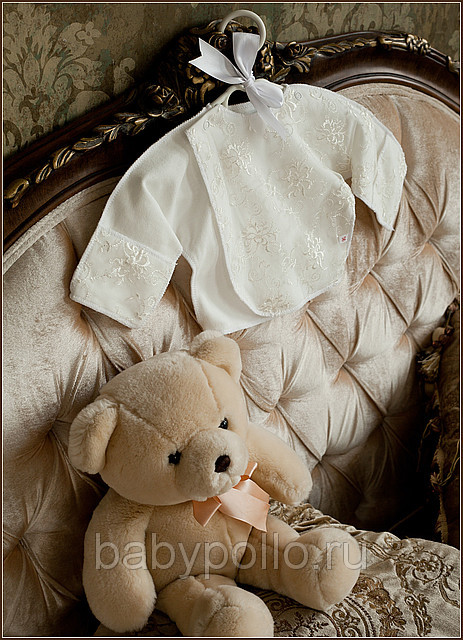 Состав -100 % хлопок (интерлок ,пенье), размер 56, цвет молочный.Отделка -тончайшее гипюрное полотно. Оптовая и розничная продажа одежды для новорожденных.