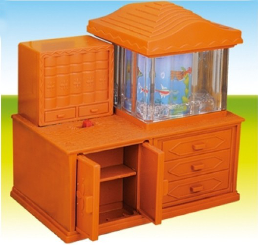(включается подсветка и крутится "барабан" с нарисованными рыбками)